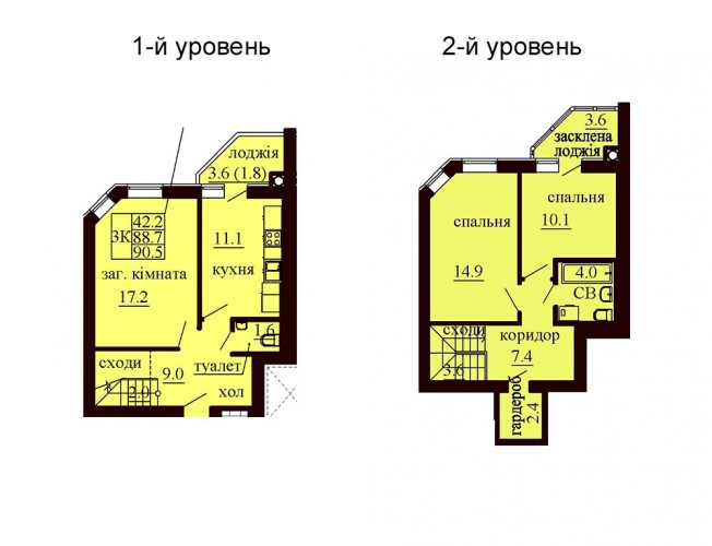 ДВОРІВНЕВА КВАРТИРА 90.50 М/КВ