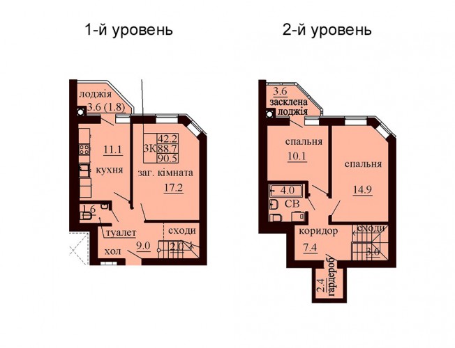 ДВОРІВНЕВА КВАРТИРА 90.50 М/КВ