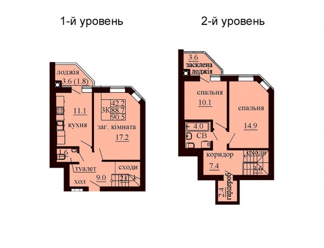ДВОРІВНЕВА КВАРТИРА 90.50 М/КВ
