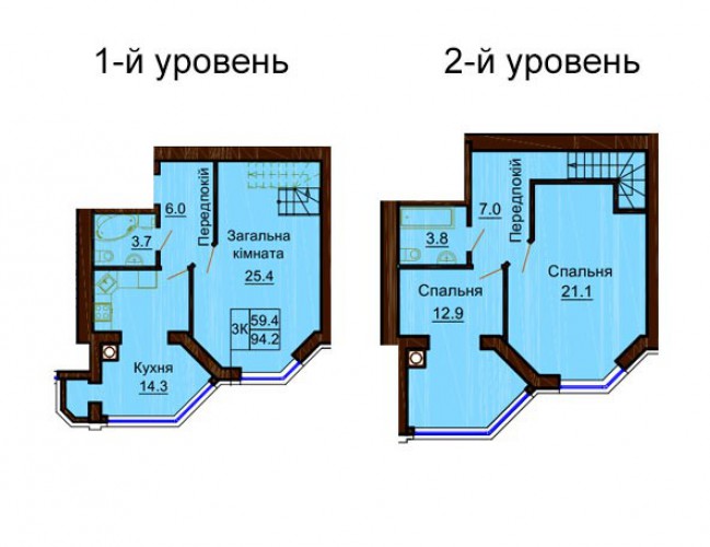 ДВОРІВНЕВА КВАРТИРА 94.20 М/КВ