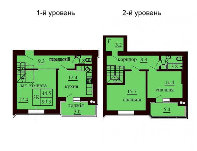 ДВОРІВНЕВА КВАРТИРА 99.30 М/КВ