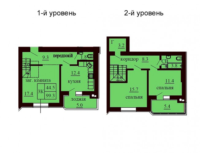 ДВОРІВНЕВА КВАРТИРА 99.30 М/КВ