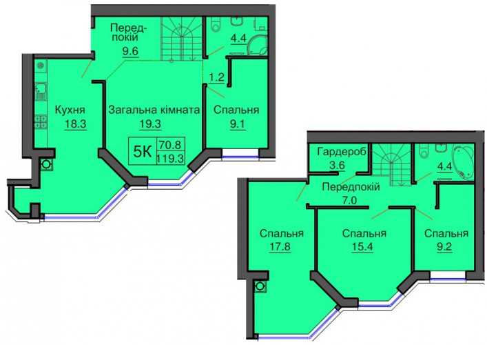 ДВУХУРОВНЕВАЯ КВАРТИРА 119.30 М/КВ