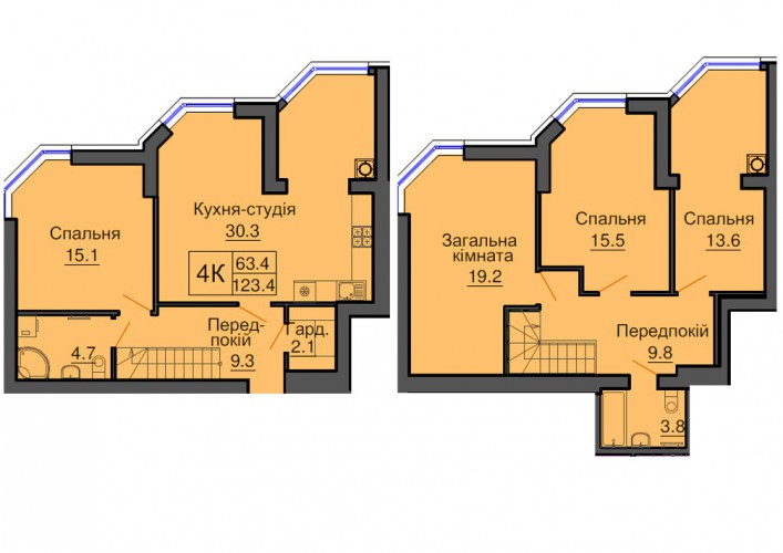 ДВУХУРОВНЕВАЯ КВАРТИРА 123.40 М/КВ