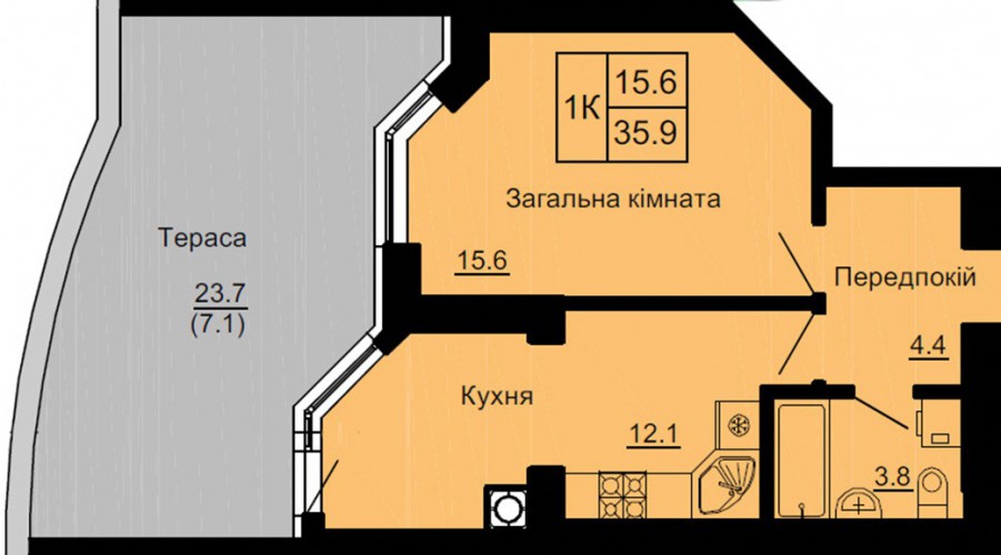 ОДНОКІМНАТНА КВАРТИРА 35.90 М/КВ