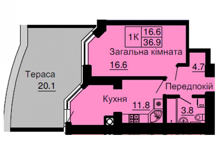 ОДНОКІМНАТНА КВАРТИРА 36.90 М/КВ