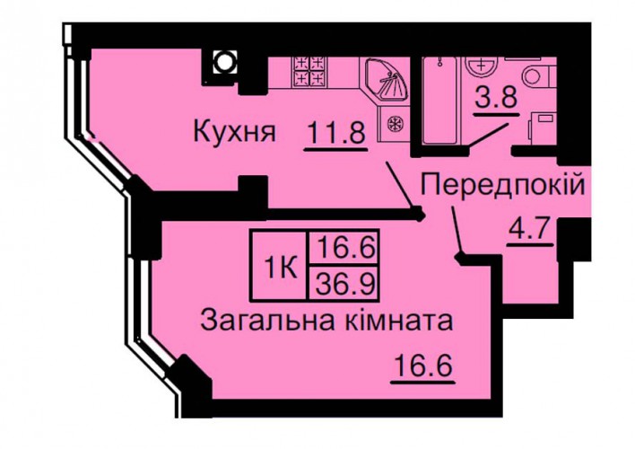 ОДНОКІМНАТНА КВАРТИРА 36.90 М/КВ