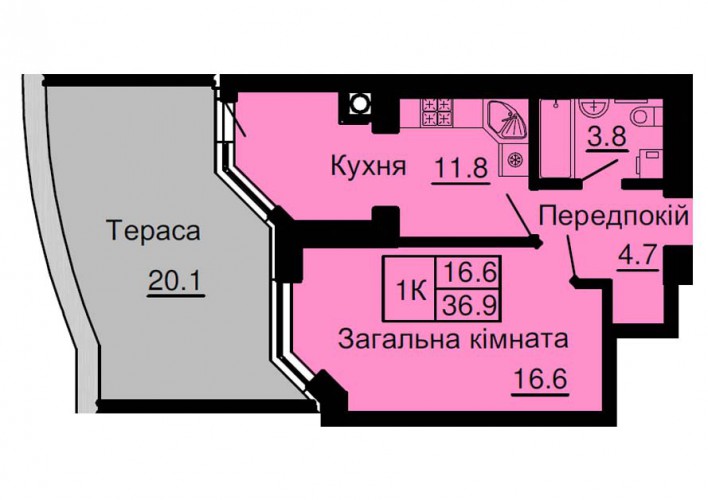 ОДНОКІМНАТНА КВАРТИРА 36.90 М/КВ