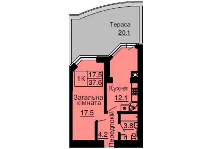 ОДНОКІМНАТНА КВАРТИРА 37.60 М/КВ