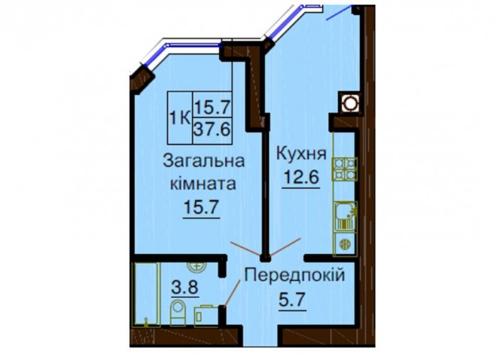 ОДНОКІМНАТНА КВАРТИРА 37.60 М/КВ