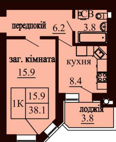S загальна (м2): 38.10