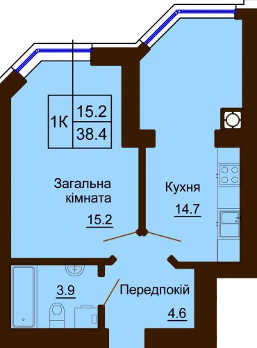 ОДНОКІМНАТНА КВАРТИРА 38.40 М/КВ
