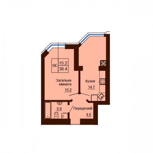 ОДНОКІМНАТНА КВАРТИРА 38.40 М/КВ