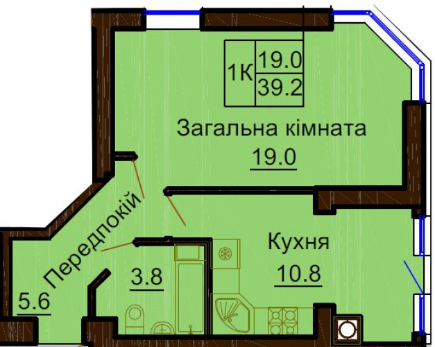 ОДНОКІМНАТНА КВАРТИРА 39.20 М/КВ