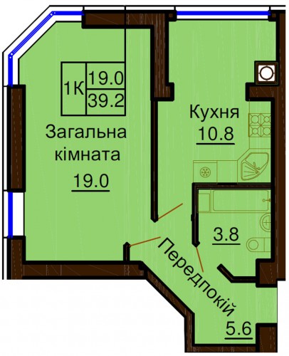 ОДНОКІМНАТНА КВАРТИРА 39.20 М/КВ