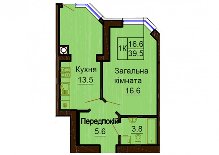 ОДНОКІМНАТНА КВАРТИРА 39.50 М/КВ