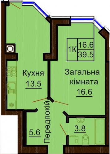 ОДНОКІМНАТНА КВАРТИРА 39.50 М/КВ