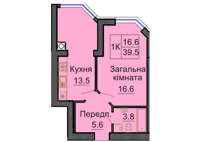 ОДНОКІМНАТНА КВАРТИРА 39.50 М/КВ