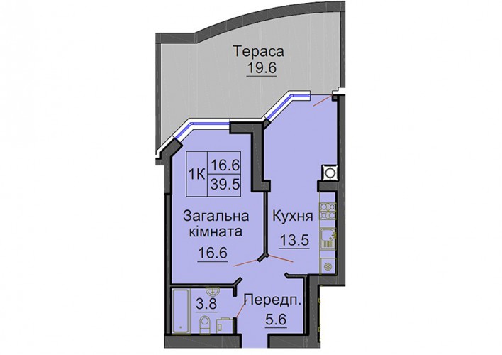 ОДНОКІМНАТНА КВАРТИРА 39.50 М/КВ