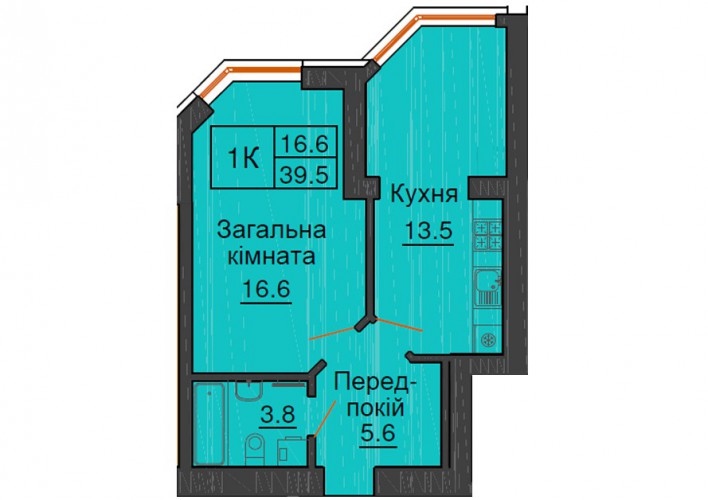 ОДНОКІМНАТНА КВАРТИРА 39.50 М/КВ
