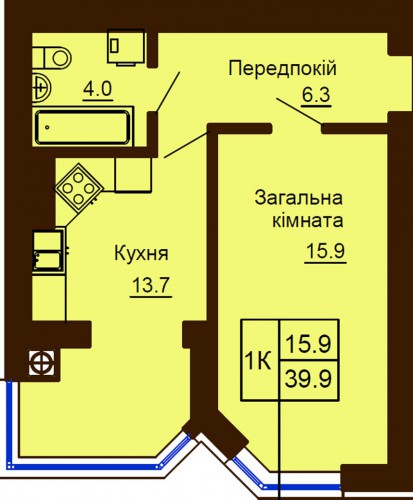 ОДНОКІМНАТНА КВАРТИРА 39.90 М/КВ