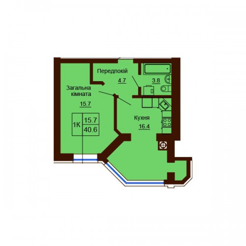 ОДНОКІМНАТНА КВАРТИРА 40.60 М/КВ