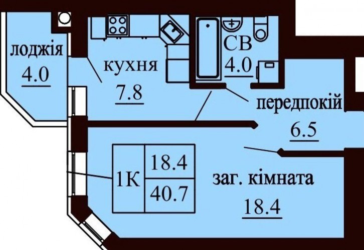 ОДНОКІМНАТНА КВАРТИРА 40.70 М/КВ