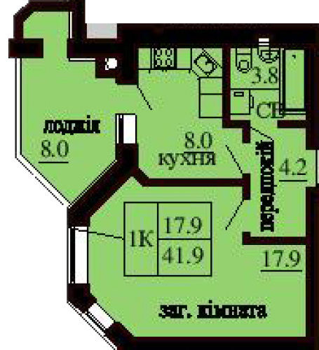 ОДНОКІМНАТНА КВАРТИРА 41.90 М/КВ