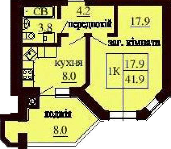 ОДНОКІМНАТНА КВАРТИРА 41.90 М/КВ