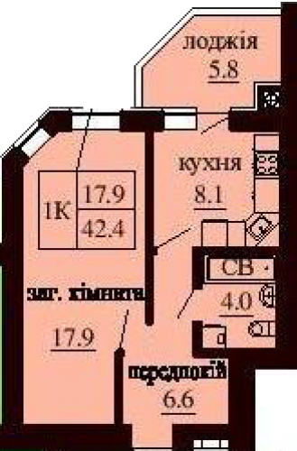 ОДНОКІМНАТНА КВАРТИРА 42.40 М/КВ