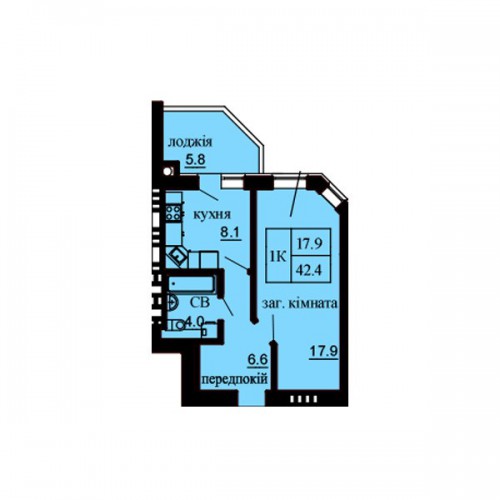 ОДНОКІМНАТНА КВАРТИРА 42.40 М/КВ