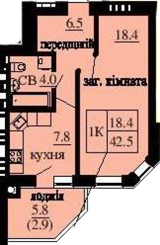 ОДНОКІМНАТНА КВАРТИРА 42.50 М/КВ