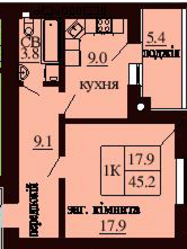 ОДНОКІМНАТНА КВАРТИРА 45.20 М/КВ
