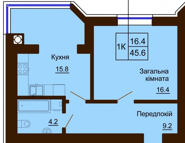 ОДНОКІМНАТНА КВАРТИРА 45.60 М/КВ