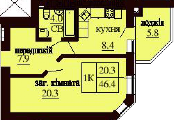 ОДНОКІМНАТНА КВАРТИРА 46.40 М/КВ