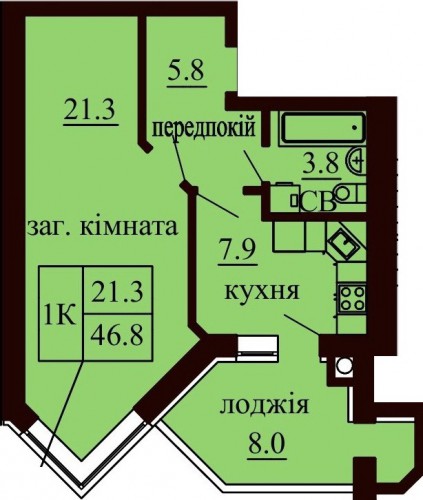 ОДНОКІМНАТНА КВАРТИРА 46.80 М/КВ