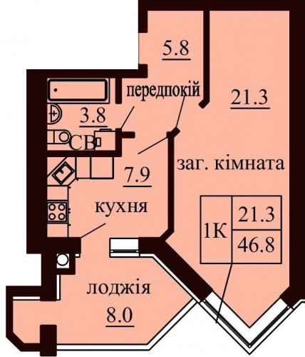 ОДНОКІМНАТНА КВАРТИРА 46.80 М/КВ