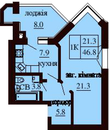 ОДНОКІМНАТНА КВАРТИРА 46.80 М/КВ