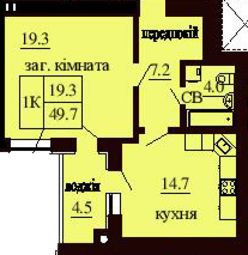 ОДНОКІМНАТНА КВАРТИРА 49.70 М/КВ