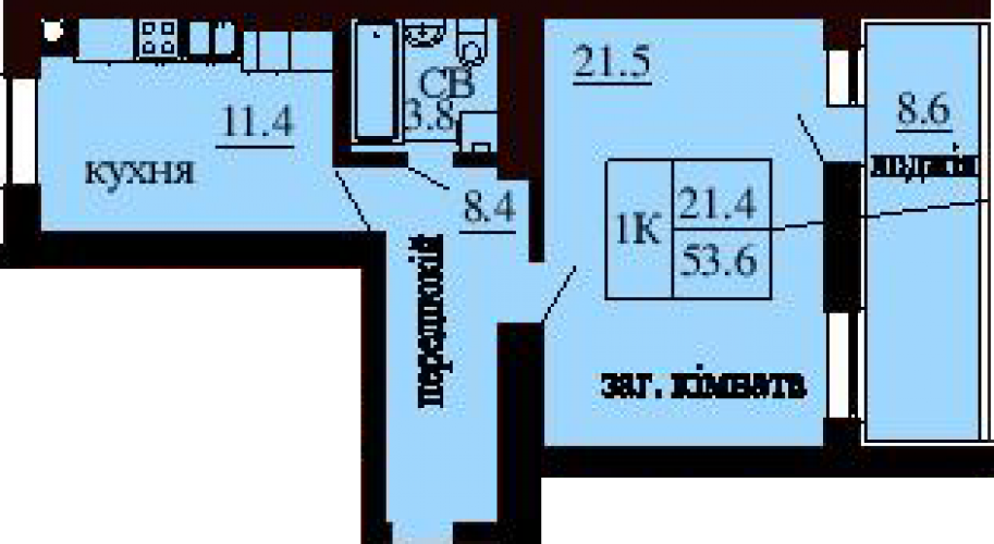 ОДНОКІМНАТНА КВАРТИРА 53.60 М/КВ