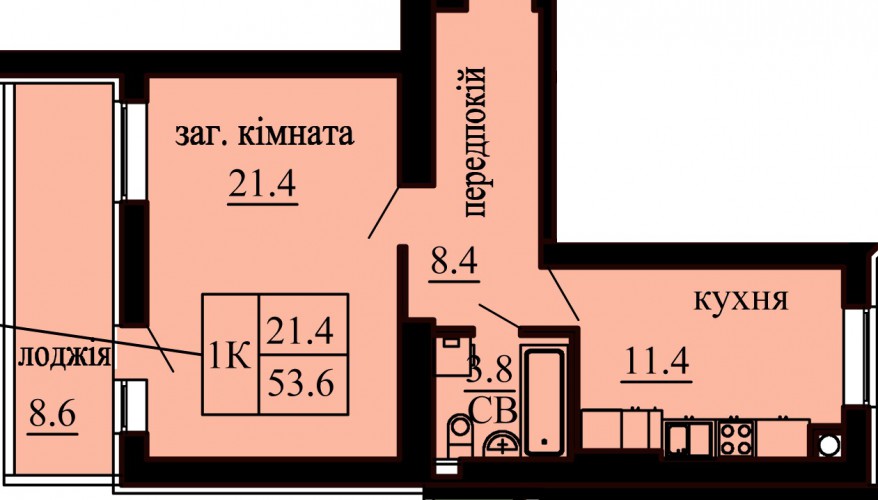 ОДНОКІМНАТНА КВАРТИРА 53.60 М/КВ