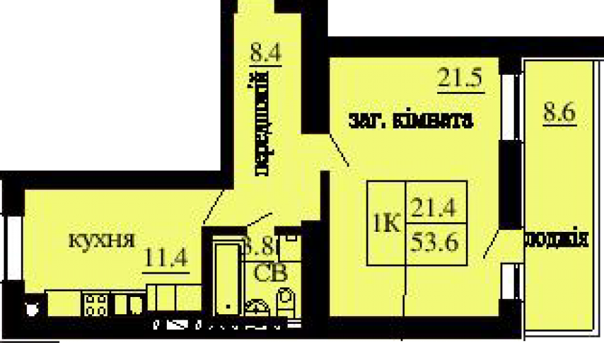 ОДНОКІМНАТНА КВАРТИРА 53.60 М/КВ