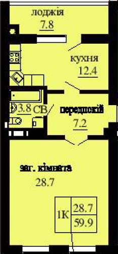 ОДНОКІМНАТНА КВАРТИРА 59.90 М/КВ