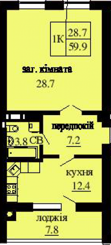 ОДНОКІМНАТНА КВАРТИРА 59.90 М/КВ