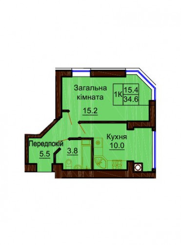 ОДНОКІМНАТНА КВАРТИРА 34.60 М/КВ