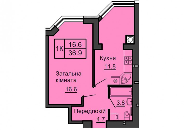 ОДНОКІМНАТНА КВАРТИРА 36.90 М/КВ