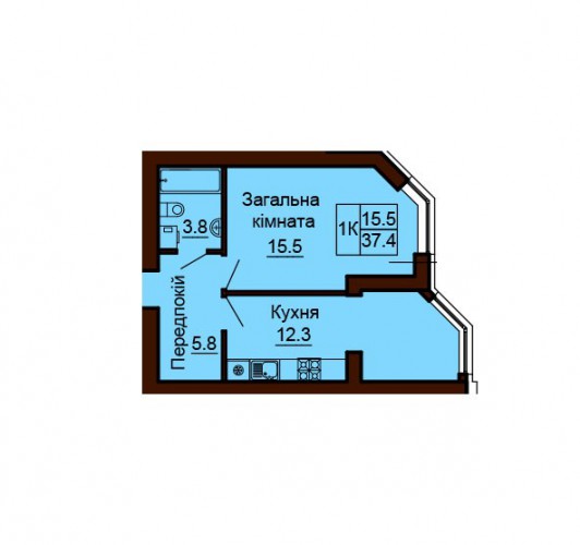 ОДНОКІМНАТНА КВАРТИРА 37.40 М/КВ