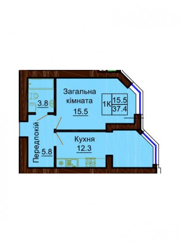 ОДНОКІМНАТНА КВАРТИРА 37.40 М/КВ