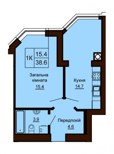 ОДНОКІМНАТНА КВАРТИРА 38.60 М/КВ