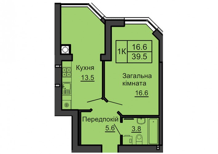 ОДНОКІМНАТНА КВАРТИРА 39.50 М/КВ